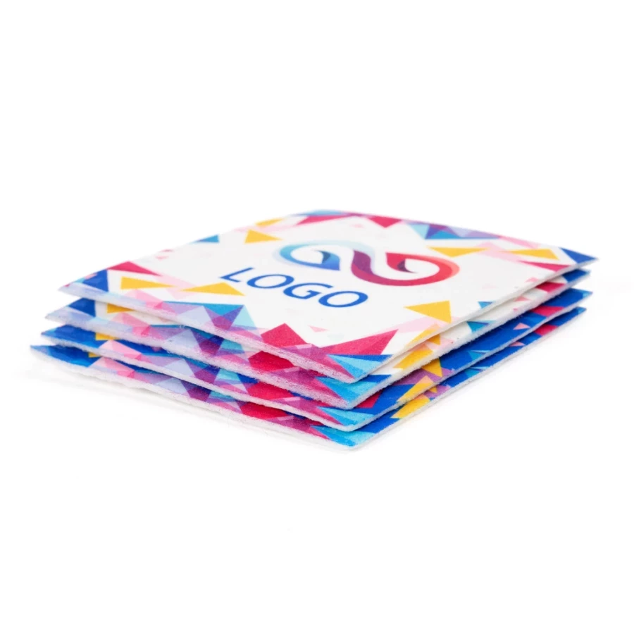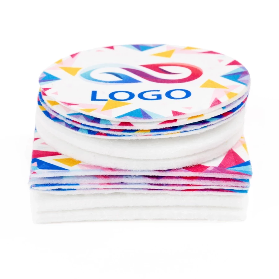 Рекламні накладки на кружки кружка широко використовуються не лише в ресторанах чи барах. Їх можна успішно використовувати як елемент брендингу в буфетах для співробітників, на кухнях або в офісах. Вони також добре підійдуть в якості невеликого подарунка для клієнтів. У нашому асортименті є фетрові накладки на кружки підставки під кружки можуть бути брендовані за допомогою методу сублімаційного друку, який дозволяє наносити повнокольорову графіку або написи. Друковані фетрові підставки для горняток легко підтримувати в чистоті, вони дуже міцні та ефективно захищають будь-яку поверхню від термічних пошкоджень, спричинених холодними або гарячими напоями.
